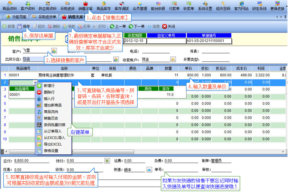 第6步:銷售出庫,將東西賣出去,需要做銷售出庫處理,可以直接點擊工具欄上銷售出庫按鈕打開如圖所示的窗口