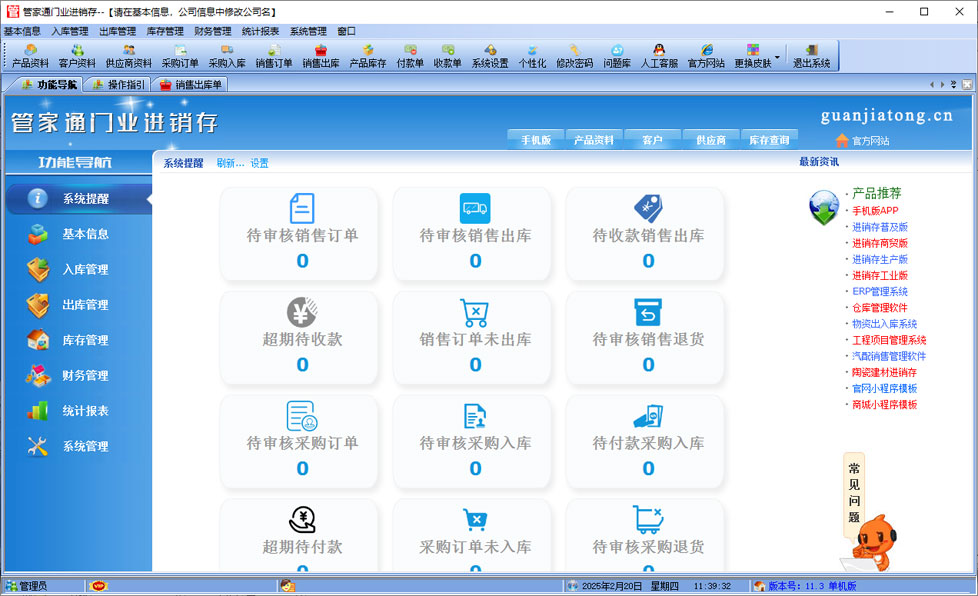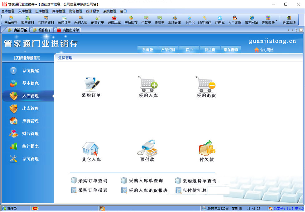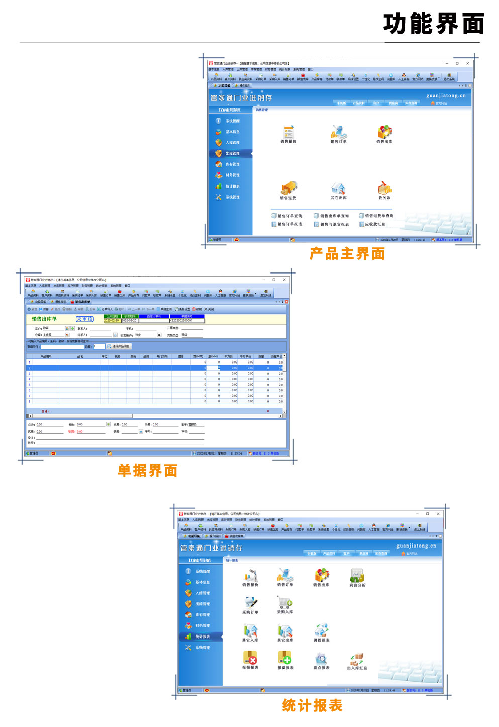 管家通門業進銷存是一款專業的針對門窗行業而設計的進銷存軟件,開單可以輸入寬高計算平方數,輸入平方單價*數量計算金額,產品屬屬上可以設置計價方式,即可以按平方計價,也可以按單位數量計價,其中包含商品銷售管理系統 ,庫存管理系統(倉庫管理系統),財務和報表系統等子模塊。軟件界面設計簡潔,美觀,其人性化的軟件流程,使普通用戶不需培訓也能很快掌握軟件操作使用方法,上手極易。強大報表與集成查詢功能是本軟件的最大特色,所有功能在用戶需要的使用地方自然體現,不用打開多個窗口重復查詢。管家通進銷存軟件廣泛適用于企業,商貿公司,個體門店等用于商業銷售管理, 庫存管理,財務管理等,客戶管理,員工管理等場合,是您企業進行信息化管理的強大工具。 入庫管理:進行商品采購入庫,采購退貨,進貨單據和退貨單據查詢 出庫管理:銷售出貨,客戶退貨,銷售單據和客戶退貨查詢。 庫存管理:包括庫存之間貨品調拔,庫存報損、報溢,庫存盤點功能。 財務管理:預付款、預收款,應收應付款,收入支出,,供應商往來帳務,供應商付款,客戶往來帳務,客戶付款 。 統計報表:完整的統計查詢功能,每張單據每次業務金額都可以清楚的反映。 權限管理:可添加刪除系統操作員帳號,強大的權限控制,可以設置某用戶對某窗口某個按鈕的權限。 打印設計:可對系統內每個單據進行打印的格式設計,可以導出,導入,每個操作員可設計自己的打印格式。 界面設計:系統窗口界面名稱可以自定義設計,表格的顯示順序,寬度,是否顯示等,每個操作員可以設計自己的界面。 系統設置:可以靈活設置系統小數位數,可選0-6位,讓帳務更精確,可對以往數據進行選擇性的清除,以便系統初始化。 數據備份:可隨時對系統數據庫進行安全備份,以防數據丟失。 |